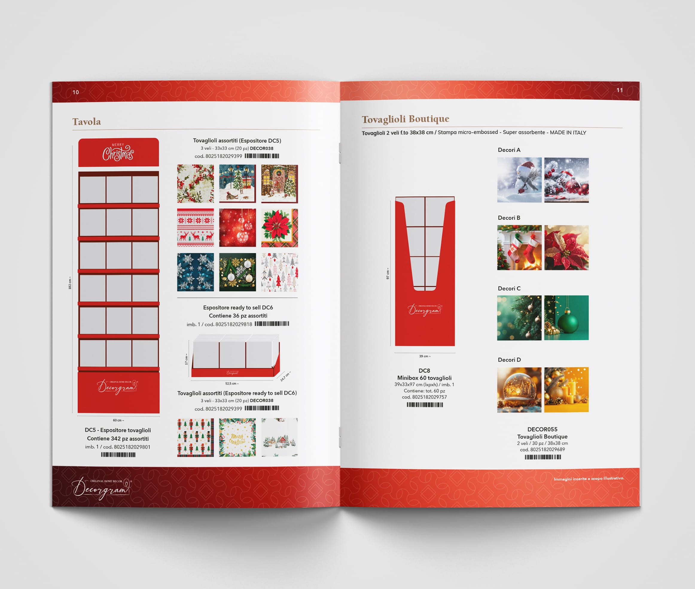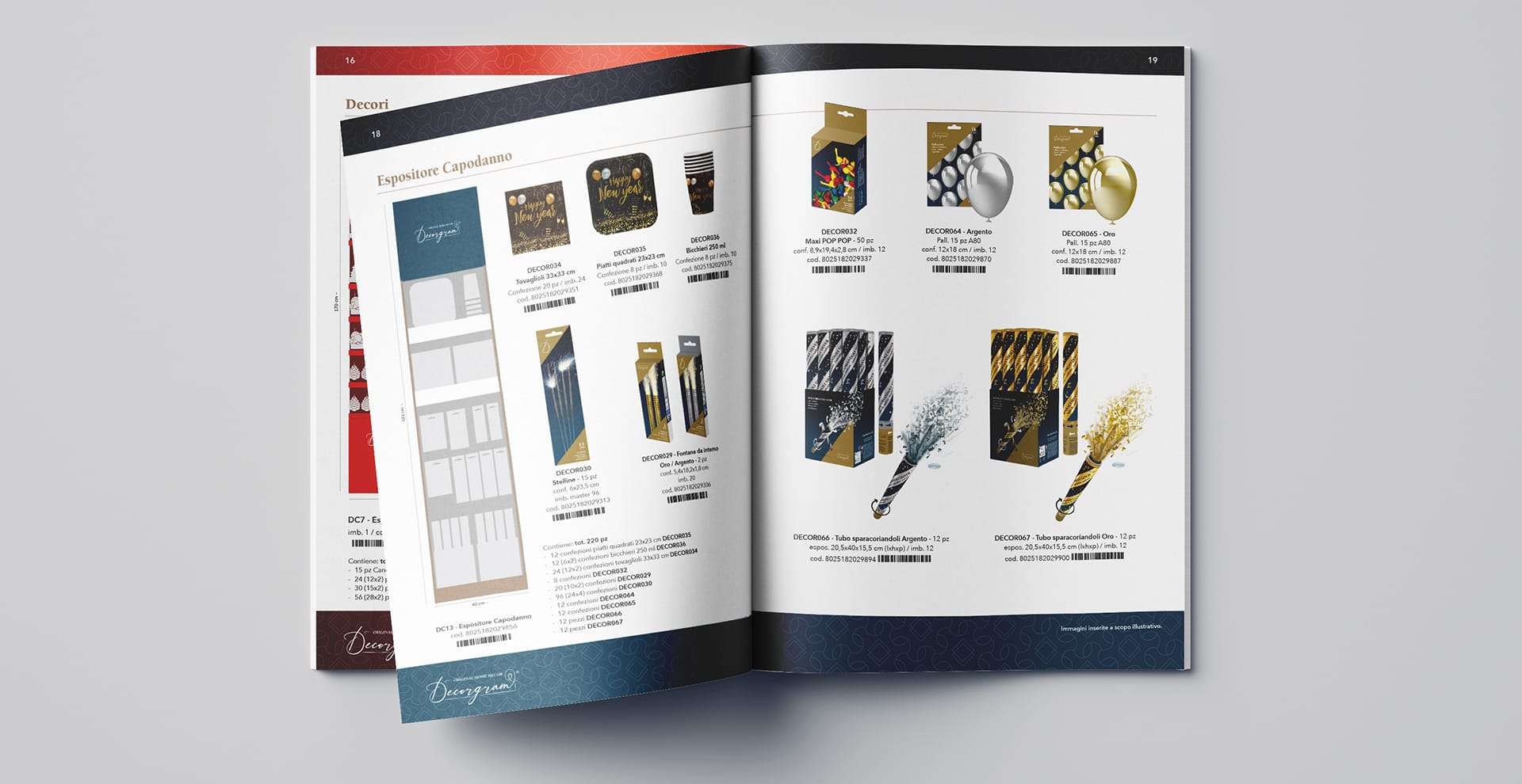 Il catalogo festività Decorgram è uno strumento commerciale dedicato alla presentazione della linea di prodotti per Natale e Capodanno. L’obiettivo del progetto era organizzare in modo chiaro e coerente una gamma articolata di referenze, trasformando il catalogo in uno strumento efficace per la rete vendita e per la comunicazione con distributori e clienti.
